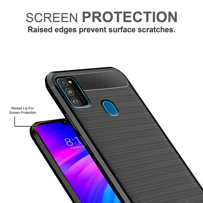 • Samsung Galaxy M30s with perfect cutouts for volume buttons, audio, and charging ports