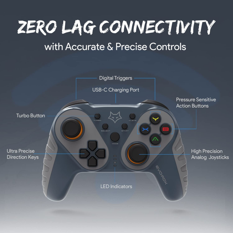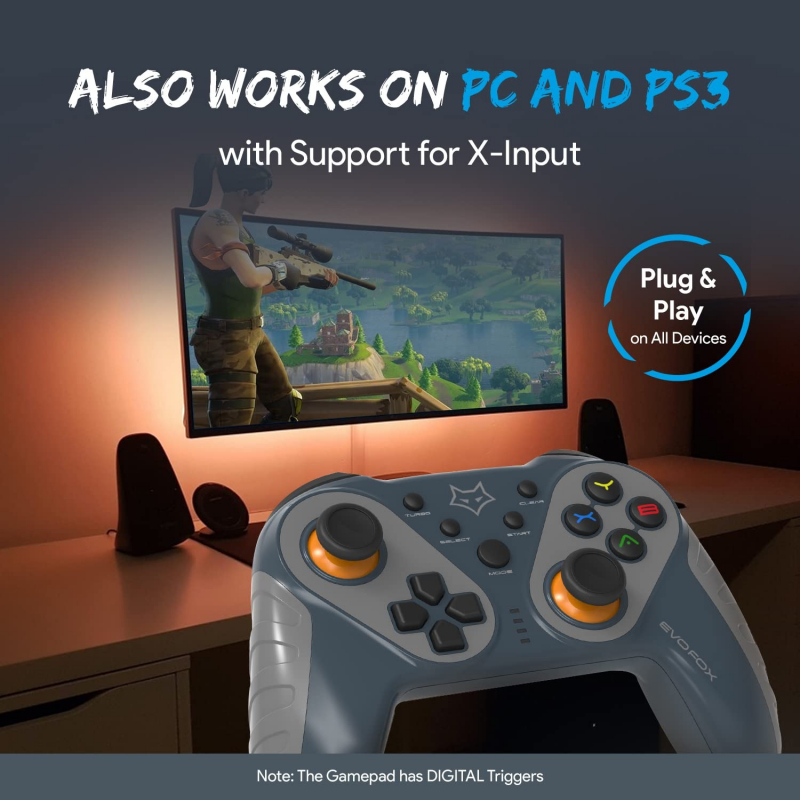 The EvoFox Elite Ops Wireless Gamepad with Type C Charging is the ideal Android TV Gamepad. With all Android TVs supporting at least basic Gaming, a Gamepad at home is a must. Use the provided USB Extender Cable on your TV to ensure optimal wireless performance.