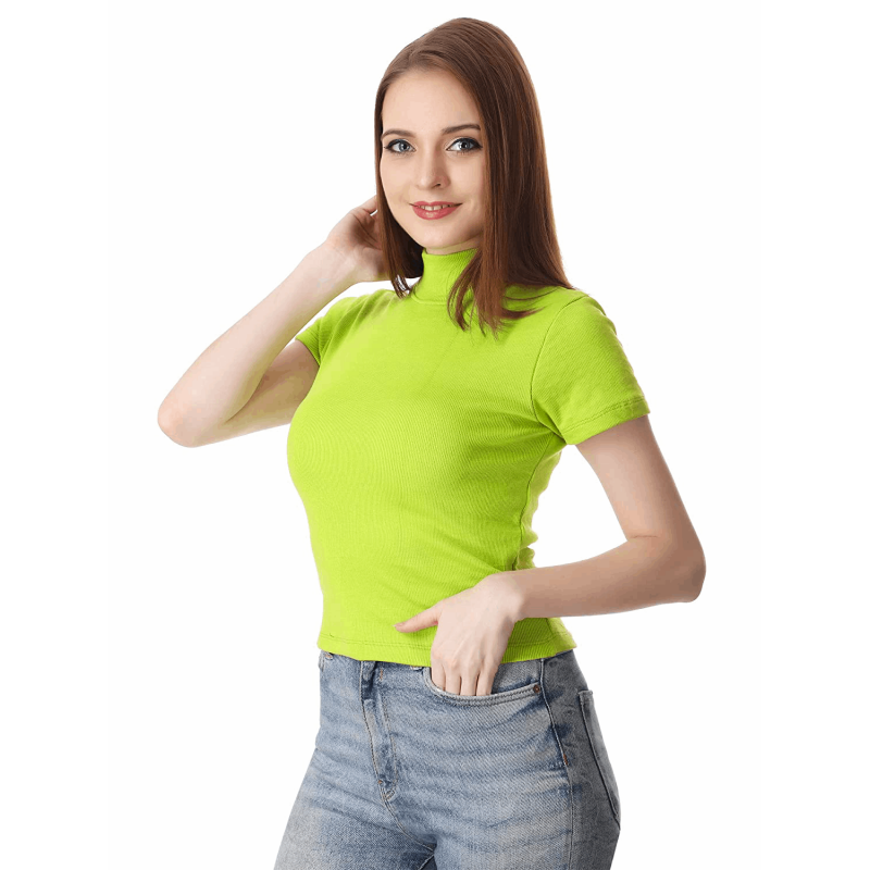 Green Ribbed Top for Women and Girls Relaxed Fit