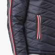 The Navy blue geometric self-design windcheater quilted jacket, has a hood, 2 pockets, a zip closure, long sleeves, a straight hemline, and polyester lining.